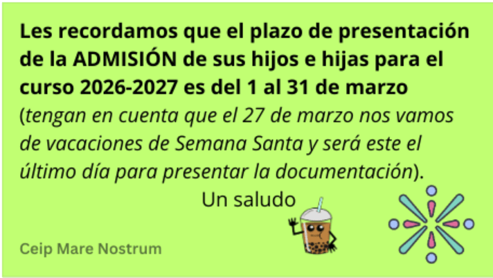IMPORTANTE: Imagen Posted on 16 de marzo de 2026 por CEIP MARE NOSTRUM Comparte esto:Tweet Relacionado
