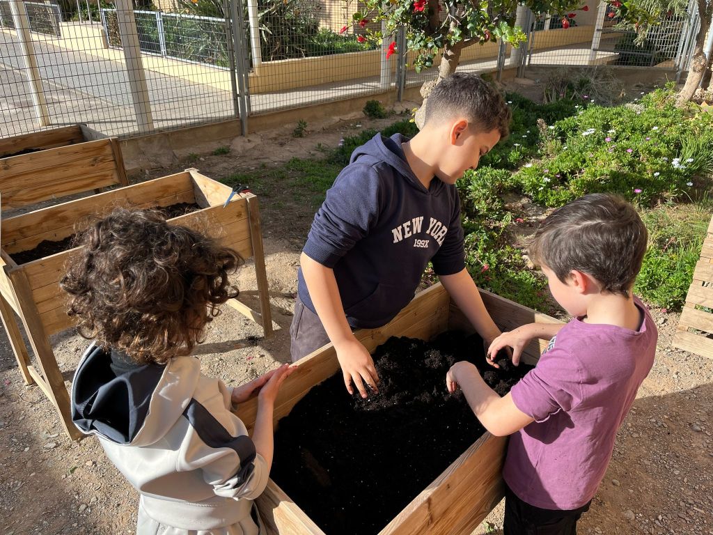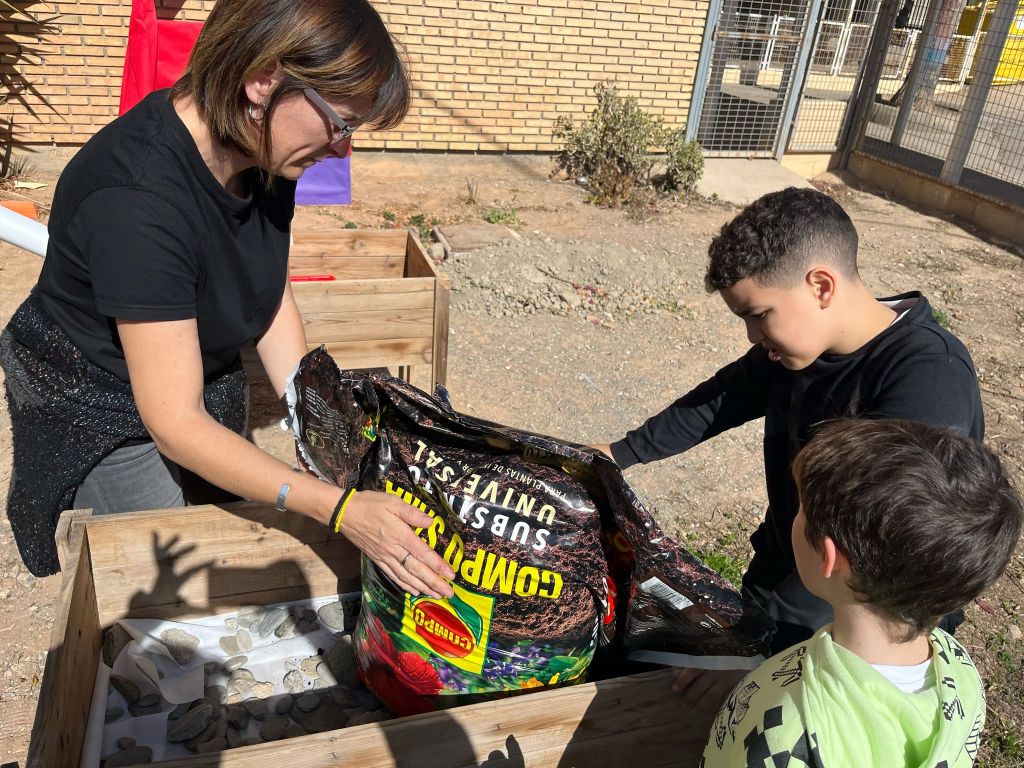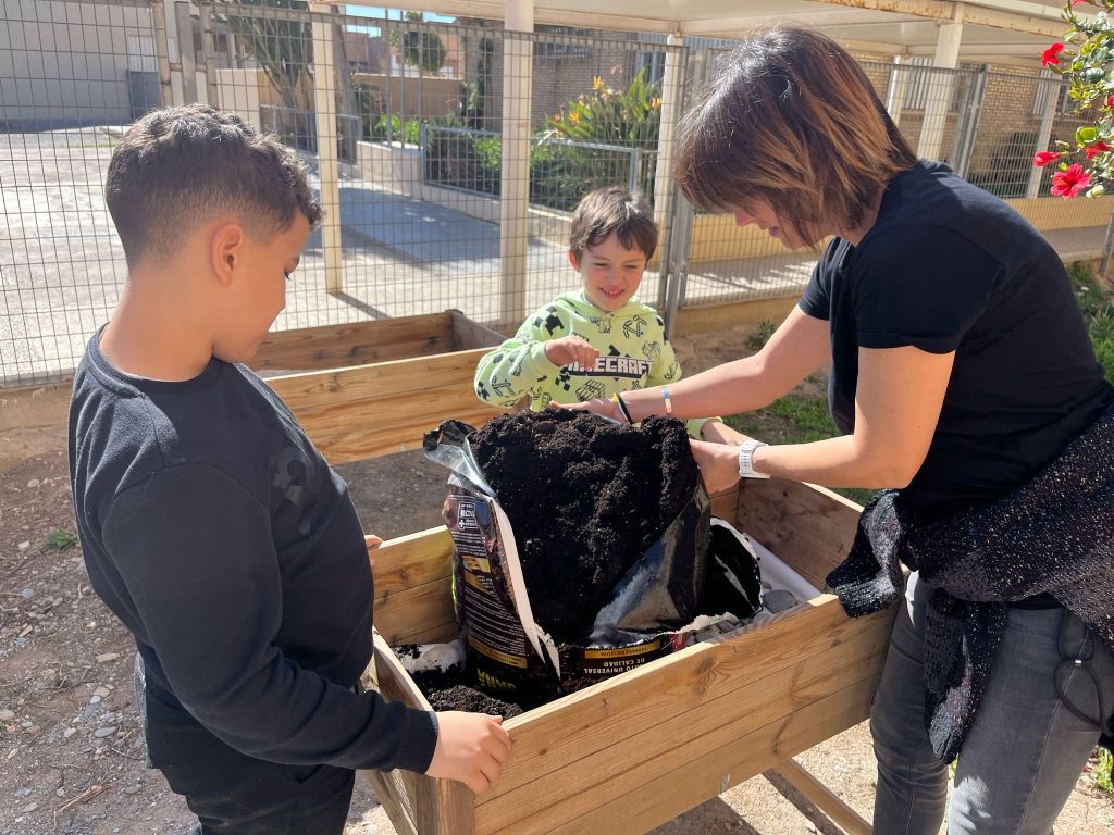 Día 1. Preparamos las jardineras. Echamos el sustrato y deshacemos toda la tierra aglomerada.
