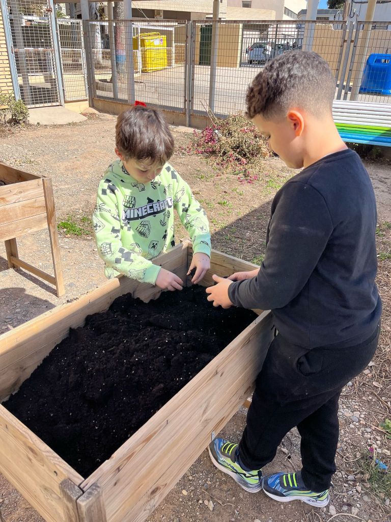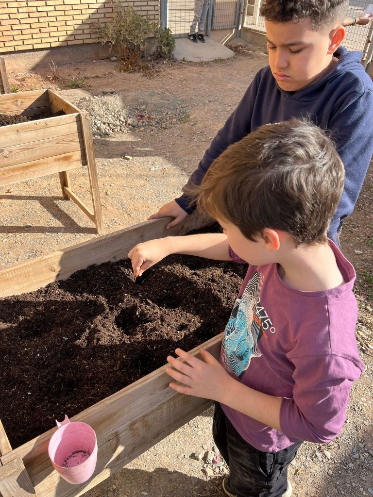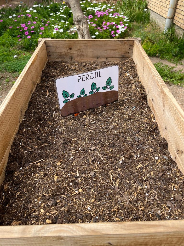 Día 2. Plantamos las semillas: acelgas, zanahorias, perejil y rábanos.